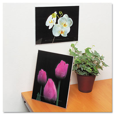 The ultimate in sign holder versatility. Desktop or wall mount in either portrait or landscape orientation. Easel back snaps out for quick conversion to desktop sign holder. Creates floating signage effect. Frame Color: Clear; Size: 4 x 6.