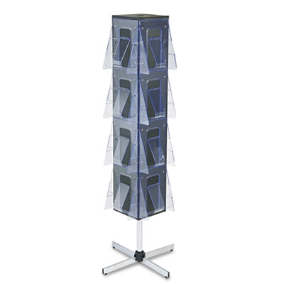 DEF58021 Revolving Literature Floor Rack, 16 Compartments, 15w x 64h, Black/Chrome By DEFLECTO CORPORATION