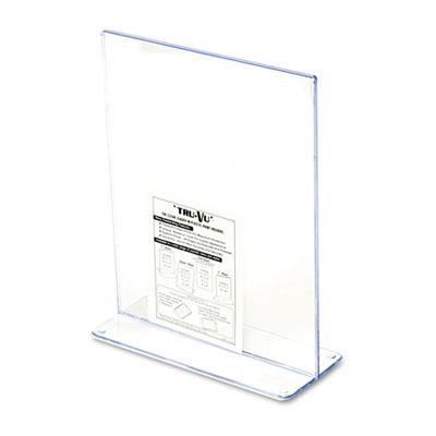 Freestanding durable plastic T-frame holder lets you move signs to where you need them most and allows viewing from two directions. Loads from the top. Rounded, polished edges on three sides to prevent slipping. Frame Color: Clear; Size: 8 1/2 x 11.