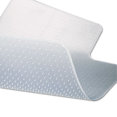 Studded, protective vinyl mat made for low pile carpeting. The transparent color allows the beauty of your carpeting to show through. Unique notched stud design produces a strong grip without piercing or damaging carpet backing. The durable, textured surface is slip-and-scuff resistant. Beveled edge design for easier maneuverability. Mat Type: Chair Mat; Application: Carpet; Material(s): Vinyl.