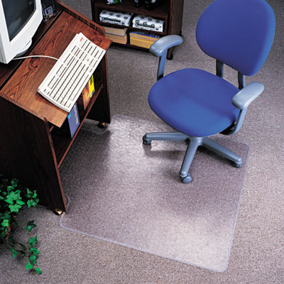 Nonstudded transparent chair mat is made for low pile carpeting. Chair mat is made from vinyl, producing a clear color that allows the beauty of your carpet to show through. Textured top surface is slip- and scuff-resistant. Mat Type: Chair Mat; Application: Carpet; Material(s): Vinyl.