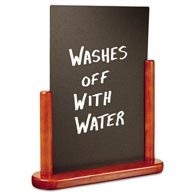 Display specials, information, notes and more! Double-lacquered rubberwood desktop sign features a removable double sided, nonporous surface for writing with chalk markers. Sturdy and attractive with any décor. Board Width: 10 3/4; Board Height: 12 7/8.