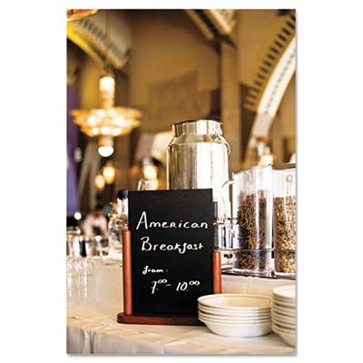 Display specials, information, notes and more! Double-lacquered rubberwood desktop sign features a removable double sided, nonporous surface for writing with chalk markers. Sturdy and attractive with any décor. Board Width: 8; Board Height: 9 1/4.