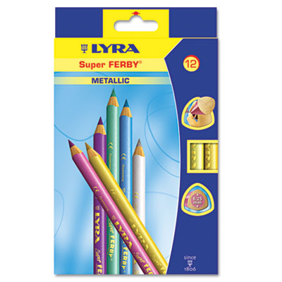 Large triangular shape provides a comfortable grip. Giant core is extremely break resistant, lasts three times longer than standard colored pencils and requires less sharpening. Wood-sealed end for greater protection and durability. Shimmery metallic colors work well on light and dark paper. Pencil Type: Woodcase; Lead Color(s): Assorted.