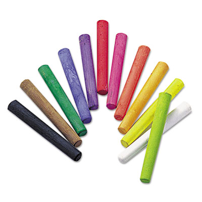 Assorted colors blend and burnish easily. Drawing paper or other toothed papers give best results. Chalk can be flaked into water for brilliant unique paper marbling effects. Color(s): Assorted; Black; Blue; Brown; Green; Magenta; Orange; Red; Red Orange; Violet; White; Yellow; Yellow Green; Number of Colors: 12; Age Recommendation: Ages 8 and Up; Length: 3 3/16 in.