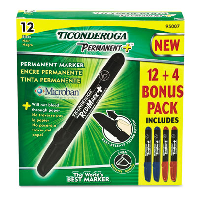Provides bold color without bleeding. Specially formulated water-based ink is smooth-flowing and odorless. Squeak-free point marks on most surfaces. Finish contains MicrobanŽ to inhibit odor- and stain-causing bacteria. Buy 12 black get 2 blue and 2 red free. Marker Type: Permanent; Color(s): Assorted.