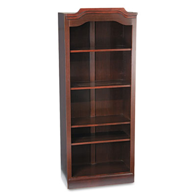 Classic elegance that makes a statement in an executive setting. Engraved mahogany finish on solid hardwood. Shelves adjust to meet your storage needs. High-pressure laminate on surface helps resists scratches and damage. Leveling glides compensate for uneven floors. Color: Mahogany; Material: Laminated; Shelf Count: 5.