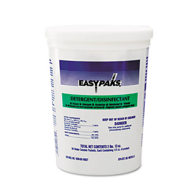 Premeasured water-soluble packet takes the guesswork out of cleaning. Cleans, disinfects and deodorizes hard surfaces such as walls, floors, sink tops, tables and chairs. Effective against mildew, bacteria and viruses including HIV-1 (AIDS virus). Idea for use in foodservice, nursing homes and other settings where housekeeping and disinfection are important. 90 packets per tub, two tubs per carton. Application: Walls; Floors; Sink Tops; Tables; Chairs; Garbage Storage; Applicable Material: Hard Surfaces.