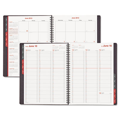 A full year of planning in one slim appointment book. Vertical weekly format with quarter-hour increments is ideal for maintaining an appointment-driven schedule. Tabbed monthly spreads with handy reference calendars. Soft, leather-like wraparound cover with contrast stitching and vinyl storage pocket. Free Plan for Success webinar information included. Size: 11 x 8; Page Color/Theme: White/Red/Gray; Appointment Ruling: 15-Min., 7 AM to 9 PM, Mon.-Fri.; 7 AM to 6 PM, Sat.; Untimed Sun..