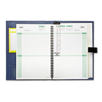 Organizer starter set has innovative hidden slip-tab closure and casual two-tone slim styling. Fashionable cover has contrasting interior and accent stitching. Includes everything you need to begin planning: 12-month undated 2-day-per-page planner, address/phone book, page locator and note pad. Slim cover with organization pockets and 2 pen loops. Includes self-stick hot-list pocket plus 1 pack of hot lists. Size: 5 1/2 x 8 1/2; Page Color/Theme: White.