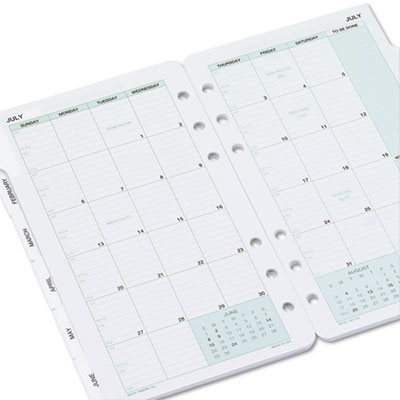 Keeps your entire month in view. Daily blocks ruled for neater notes and easier reading. Two monthly reference calendars on each spread for easier scheduling. Size: 3 3/4 x 6 3/4; Appointment Ruling: None.