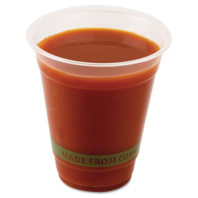 A great alternative to conventional plastic. Made with corn-based plastic (PLA), cups are 100% renewable. Printed wrap-around text includes "Made From Corn." For cold beverages only. Cup Type: Cold; Capacity (Volume): 12 oz; Material(s): Corn-Based.