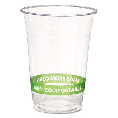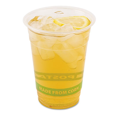 A great alternative to conventional plastic. Made with corn-based plastic (PLA), cups are 100% renewable. Printed wrap-around text includes "Made From Corn." For cold beverages only. Cup Type: Cold; Capacity (Volume): 16 oz; Material(s): Corn-Based.