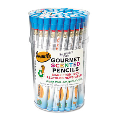 Made from 100% recycled newspapers wrapped around a standard #2 graphite core. Infused with ten delicious scents. Each pencil packaged in a separate biodegradable plastic tube to retain freshness. Pencil Type: Woodcase; Lead Color(s): Black.