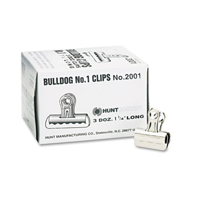 Heavy-duty steel clips keep a tight hold on all your important papers. Handy pegging hole for hanging. Strong and durable construction. Clip/Clamp Type: Bulldog Clips; Color(s): Nickel-Plated; Material(s): Steel.