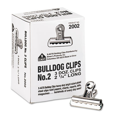 EPI2002 Bulldog Clips, Steel, 1/2" Capacity, 2-1/4"w, Nickel-Plated, 36/Box By ELMER'S PRODUCTS, INC.