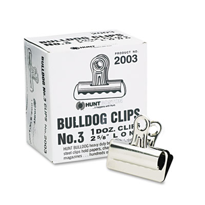Heavy-duty steel clips keep a tight hold on all your important papers. Handy pegging hole for hanging. Strong and durable construction. Clip/Clamp Type: Bulldog Clips; Color(s): Nickel-Plated; Material(s): Steel.