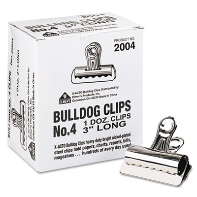 EPI2004 Bulldog Clips, Steel, 1" Capacity, 3"w, Nickel-Plated, 12/Box By ELMER'S PRODUCTS, INC.