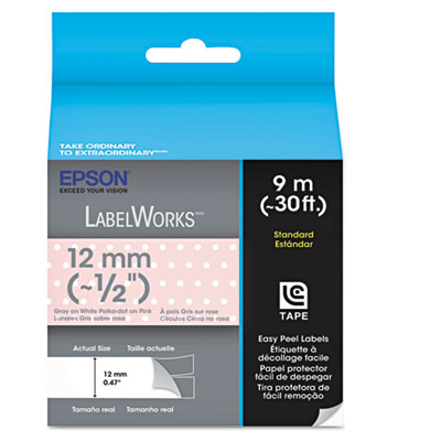 EPSLC4EAY9 LabelWorks Standard LC Tape Cartridge, 1/2", Gray on Pink/White Polka Dot By EPSON AMERICA, INC.