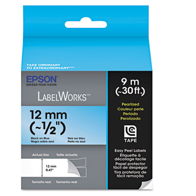 EPSLC4LBL9 LabelWorks Pearlized LC Tape Cartridge, 1/2", Black on Blue By EPSON AMERICA, INC.