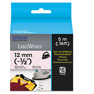 EPSLC4PBQ5 LabelWorks Iron-On Fabric LC Tape Cartridge, 1/2", Black on Pink By EPSON AMERICA, INC.
