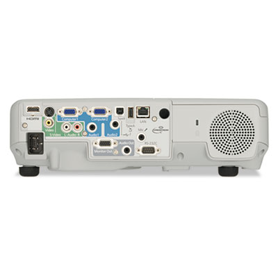 Depend on ultra-bright output even in brightly-lit rooms with this widescreen projector. Comprehensive connectivity includes HDMI digital connectivity for Blu-ray® media players, USB devices, RS-232c, Computer/VGA, and RJ-45 LAN and wireless LAN (module not included). Innovative teaching aids make your presentations a snap with built-in line and grid projection templates for whiteboards. Expanded USB capabilities enable direct connection to document camera. Powerful sound from a 16-watt speaker and microphone input to amplify the presenter's voice creates audio confidence in any situation. Brightness: 3200 lm; Technology: 3LCD.