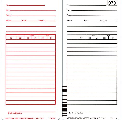 Acroprint ES1010 Time Cards. For use with the ES1000 totalizing payroll recorder. Pack of 100