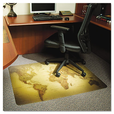 ESR118690 World Map 48x36 Rectangle Chair Mat, Design Series for Carpet up to 3/4" By E.S. ROBBINS