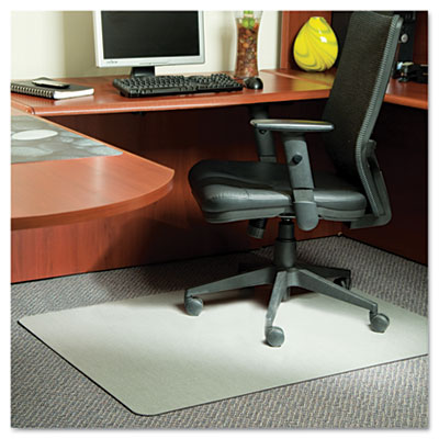 Beautiful yet tough, these mats replicate the look of metals to coordinate with accessories and furniture hardware. All day support for everyday office use. Protects medium pile carpets up to 3/4" thick including padding. Exclusive AnchorBar® chair mat cleats hold firmly in place yet are gentle on carpet and fingers, Straight edge.