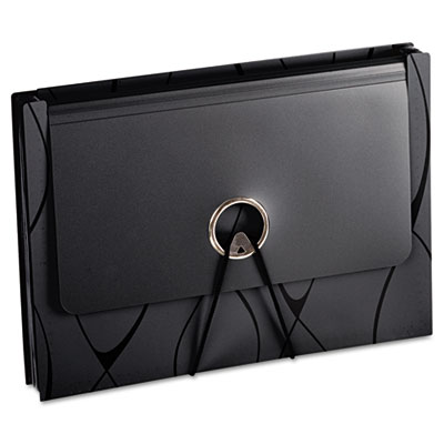 The sliding cover keeps the flap out of your way while you are accessing documents. Expanding bottom allows for additional capacity and also offers the ability to stand up on your desktop. Elastic closure. Includes blank white self-adhesive labels. Super durable poly construction is wear-, tear- and moisture-resistant. Expandable File Folder Type: Elastic Cord Closure Wallet; Size: Letter.