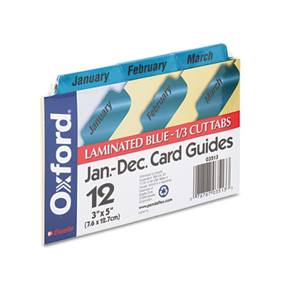 Great for organizing, desktop referencing and managing follow-up files. Preprinted laminated tabs deliver long-wearing durability. Durable cardstock won't easily bend, tear or crease. Blank/Pre-Printed: January-December; File Guides Type: Preprinted Index Card Guides; For Card/Sheet Size: 3 x 5.