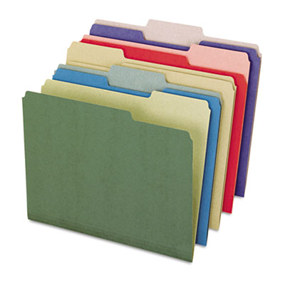 A colorful and conscientious choice, 100% recycled folders. Lighter color interior and undercut tabs prevent misfiling. Scored for 1/2" expansion. 11 pt. stock. File Folder Type: Recycled;Top Tab; Size: Letter; Folder Material: 11 pt. Stock.