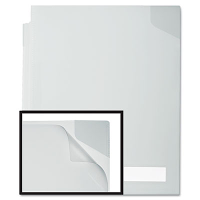 The organization system designed by you. Translucent poly pocket holds large files and features corner locks to keep documents from falling out. 50-sheet capacity. Fold-out strip can be tucked out of the way when in use. Wear, tear and moisture resistant. File Jackets/ Sleeves/Wallets Type: Sleeve; Material(s): Polypropylene.