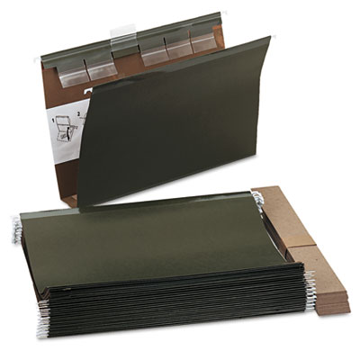 Now with patented Lift Tab™ technology. Built-in tabs easily lift up and down. Tabs are sturdier and can be easily changed. Write directly on tabs or use included sticker labels. Patented polylaminate reinforcement at all critical wear points. Flat bottom reinforced with pressboard insert for extra strength to handle thick documents, presentations, catalogs or manuals. Hanging File Folder Type: Box Bottom; Size: Legal; Expansion: 2".