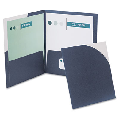 Quickly and easily create a personalized presentation right at your desk. Print logo on corner and adhere with adhesive strips. Corner is integrated into folio. Die cut business card holder on front interior pocket. Premium grade paper provides strength and durability. Design ideas included. Front Cover Color(s): Black; Back Cover Color(s): Black; Sheet Size: 11 x 8 1/2.