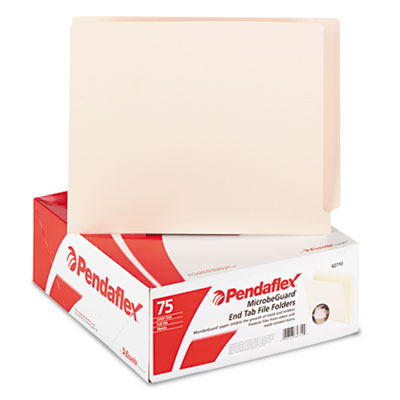 Make working environments cleaner and safer with archival-quality Manila folders that inhibit the growth of mold, mildew and odors. Stamped with MicrobeGuard™ logo to differentiate from regular filing products. Fasteners have 2" capacity. 11 pt. Manila stock. File Folder Type: Antimicrobial;End Tab; Size: Letter; Folder Material: 11 pt. Stock.