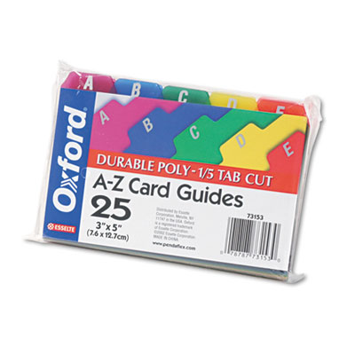 ESS73153 Card Guides, Alpha, 1/5 Tab, Polypropylene, 3 x 5, 25/Set By ESSELTE PENDAFLEX CORP.