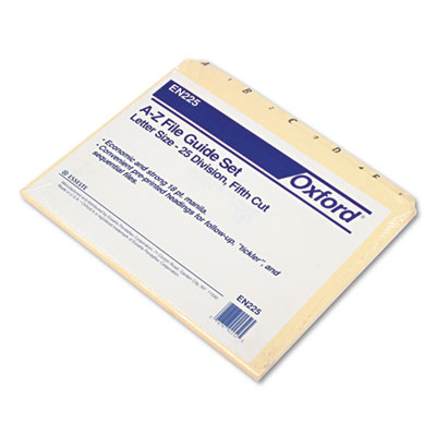 Makes it easy to stay organized! Alphabetize your files with ease. Durable file guides feature tabs preprinted with A-Z. Manufacturer's lifetime guarantee. Blank/Pre-Printed: A-Z; File Guides Type: Preprinted Top Tab File Guides; For Card/Sheet Size: Letter.