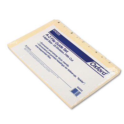 Makes it easy to stay organized! Alphabetize your files with ease. Durable file guides feature tabs preprinted with A-Z. Manufacturer's lifetime guarantee. Blank/Pre-Printed: A-Z; File Guides Type: Preprinted Top Tab File Guides; For Card/Sheet Size: Legal.