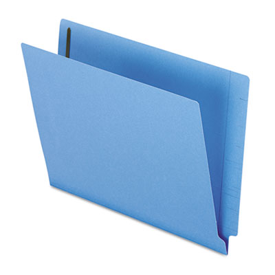 Bring color-coding efficiency to your shelf files! 2" capacity fastener in front and back interior covers organize documents. Bottom scored for 3/4" expansion. Standard 9 1/2" high front. Double-ply reinforced tabs. 11 pt. stock. File Folder Type: End Tab; Size: Letter; Folder Material: 11 pt. Stock.