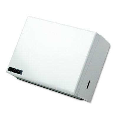 Holds 300 towels (sold separately). Includes mounting screws, lock and key. White enamel finish. Towels Dispensers Type: Folded Towel Dispenser.