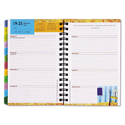 Sophisticated yet lighthearted. Colorful illustrations complement motivating thoughts about work, achieving, style, friendship. Size: 5 1/2 x 8 1/2; Page Color/Theme: Working Women; Appointment Ruling: None.