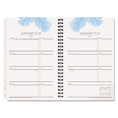 Crisp white pages feature elegant botanical line drawings. Daily "to-do" section plus open notes space. Future planning and notes pages, tabbed monthly calendars and pagefinder. Size: 5 1/2 x 8 1/2; Page Color/Theme: Botanica; Appointment Ruling: None.