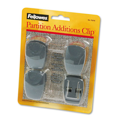 FEL75270 Plastic Partition Additions Clips, 1-1/4w x 1-7/8h, Dark Graphite, 4/Pack By FELLOWES MFG. CO.