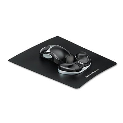 Compact, easy-gliding design encourages healthy, natural movement. Patented Health-V™ Channel reduces wrist pressure to help prevent carpal tunnel syndrome. Microban® antimicrobial protection helps keep glide and mouse pad surface clean. Optical mouse-friendly mouse pad ensures optimal performance. Compact glide works on or off mouse pad. Transparent cover. Wrist Filling Material: Gel; Mouse Pad/Wrist Rest Type: Gel Gliding Palm Support with Mouse Pad; Color(s): Black.