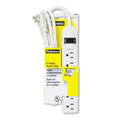 FEL99028 Six-Outlet Plastic Power Strip, 120V, 6ft Cord, 1 x 8 x 1-3/4, Platinum By FELLOWES MFG. CO.