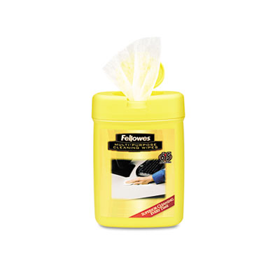 FEL99705 Multipurpose Cleaning Wet Wipes, Cloth, 3.14" x 3.94", 65/Tub By FELLOWES MFG. CO.