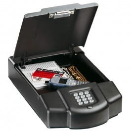 Fireking Gary EX0915 Executive Safe. The Gary® line of safes by FireKing protect all manner of valuables from burglary and theft. The Gary Executive Safe (FireKing EX0915) is a must-have for any business executive. Compact, portable and incredibly tough, the Executive Safe securely stores items inside a desk drawer - PDAs, cell phones, watches, computer discs, files and other valuables. The handy mounting system allows the safe to be easily moved from desk drawer to car trunk or nearly any location. And once the safe is locked into place, only those with proper entry code can open it or move it. No matter where life may take you, your cash and valuables can stay secure with the Gary Executive Safe.