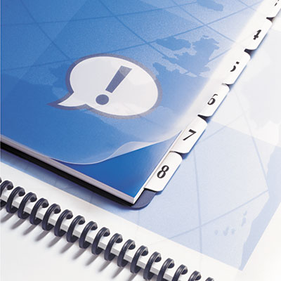 - Pre-numbered mylar tabs make it easy to organize documents.