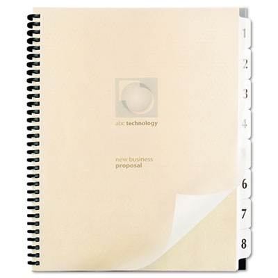 Pre-numbered mylar tabs make it easy to organize documents. Laser and inkjet printer compatible table of contents page included. Tab Style: 8-Tab; Tab Color(s): White; Index Divider Size: 11 x 8 1/2.
